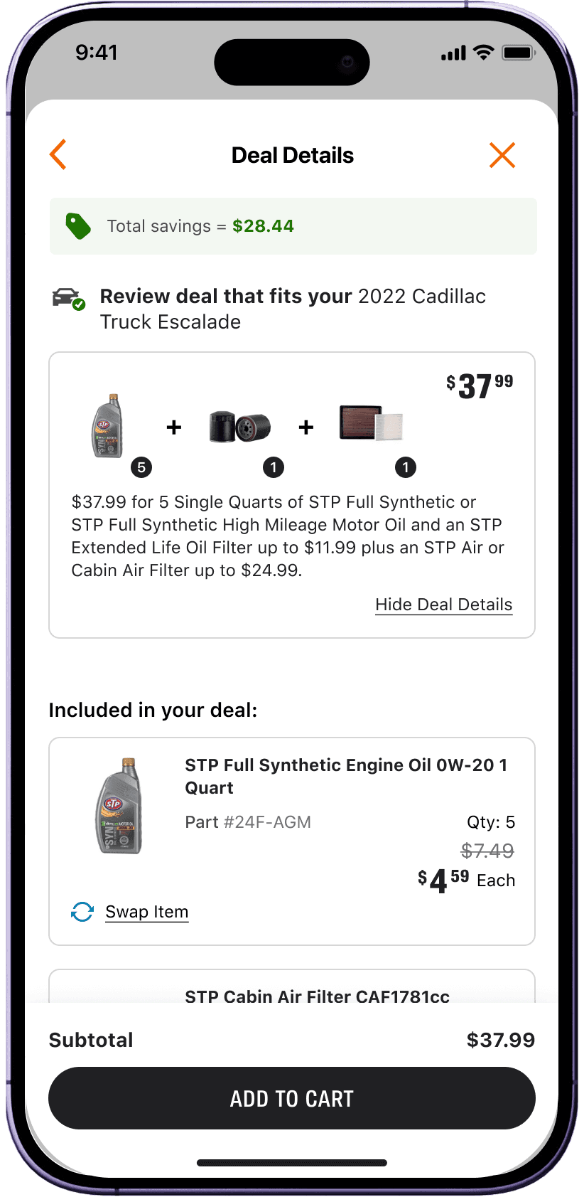 AutoZone's bundle deals were outdated, confusing, and nonexistent on mobile app. I optimized the web experience and launched deals on app for the first time. A cross-platform system grounded in research, built to convert.